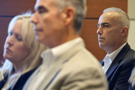 Andrew Pollack, right, and Gena and Tom Hoyer attend a hearing at the Broward County Courthouse in Fort Lauderdale, Fla., Monday, Dec. 18, 2023. Hoyer's son, Luke, and Pollack's daughter, Meadow, were killed in the 2018 shootings at Marjory Stoneman Douglas High School. (Amy Beth Bennett/South Florida Sun-911±¬ÁÏ³Ô¹Ï via AP, Pool)